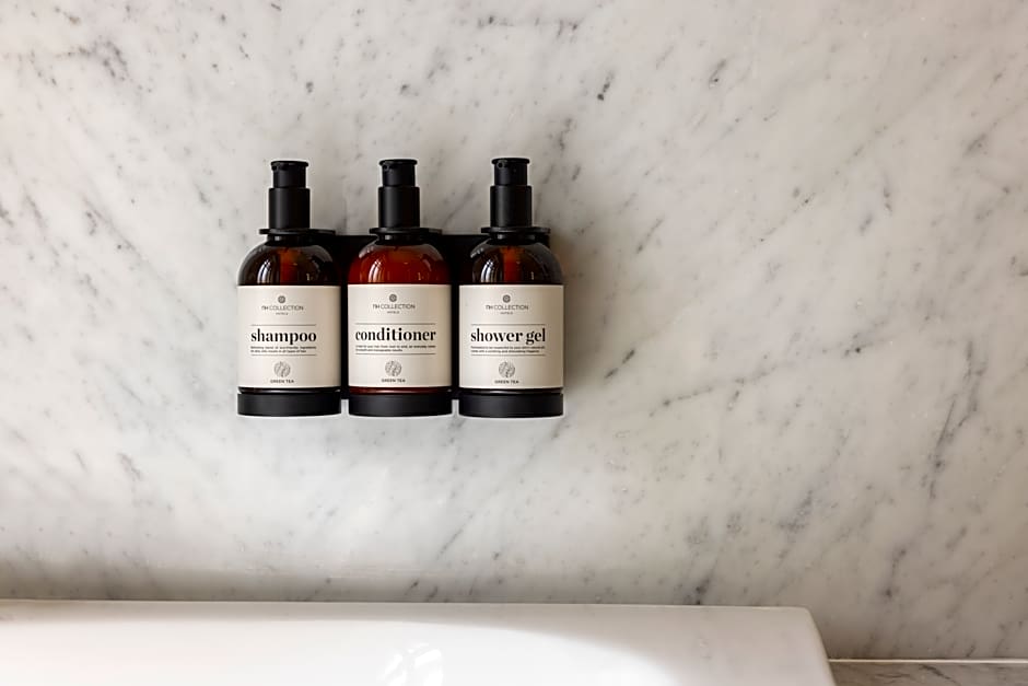 The private bathroom includes a rain-effect shower or a bath, a hairdryer, free NH toiletries, slippers and bathrobes.